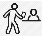 To submit an object, or a completed piece of work, to a superior or an