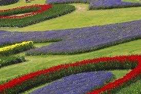 of mauve red and yellow flowers.