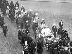 of mourners proceeding through the streets of London.