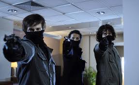 of robbers holding up a bank.